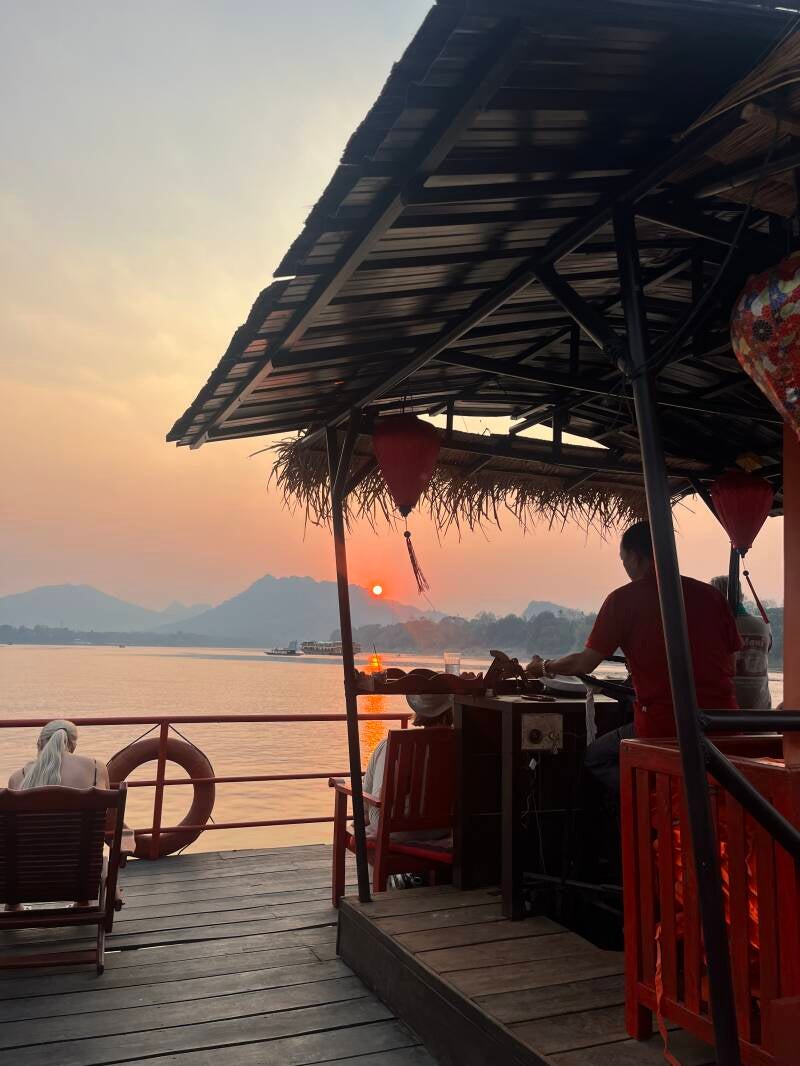 Every guest would be handed two banana leaves. On the first leaf, they can write a wish or a dream. On the second leaf, they can write a burden or something negative in their life. Later in the cruise, the wishes are released into the Mekong river to continue downstream with the fish, and the burdens are attached to a stone and sunk to the bottom. I took full advantage of this tradition each night, so technically I should have lots of wishes coming true soon and no more burdens😉