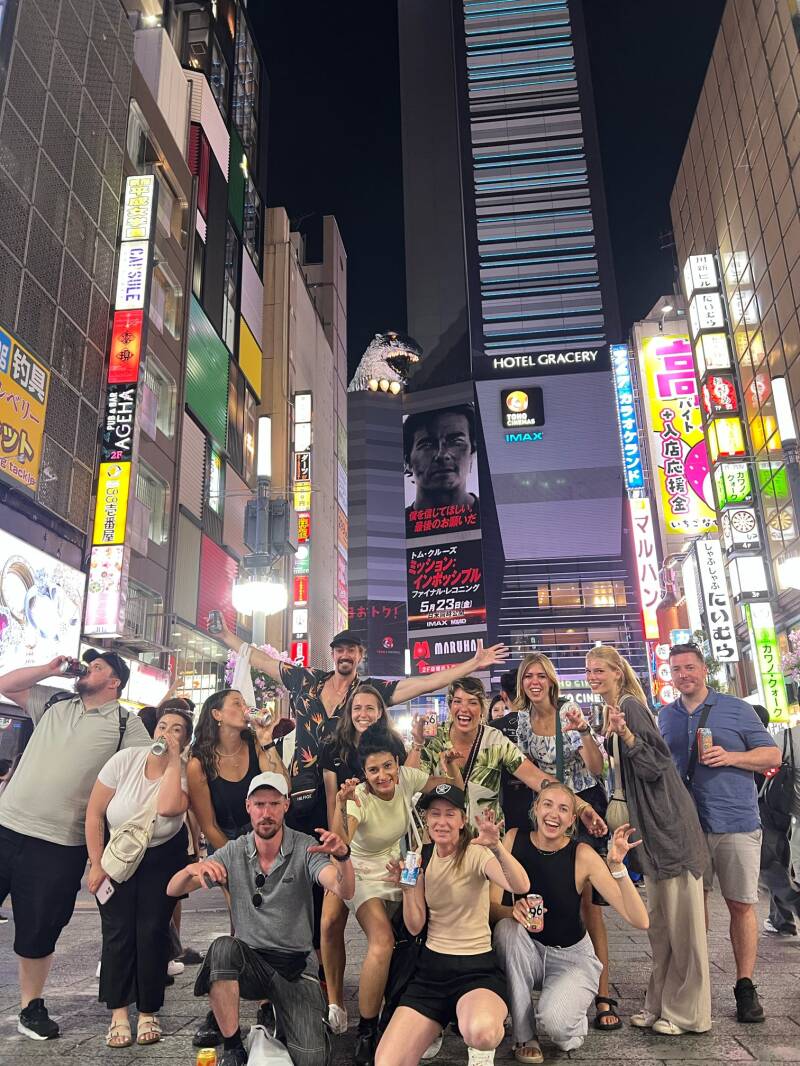 There are 18 of us from all over the world. We introduced ourselves and went out for Japanese hot pot, then explored Asakusa during the last night of a local festival. It was busy with crowds and food stalls. We visited SensÅ-ji, the oldest temple in Tokyo, and walked through the Kaminarimon (Thunder Gate) with its massive red lantern. After that, we ended up at a Ninja-themed bar for drinks and karaoke. Very fun.