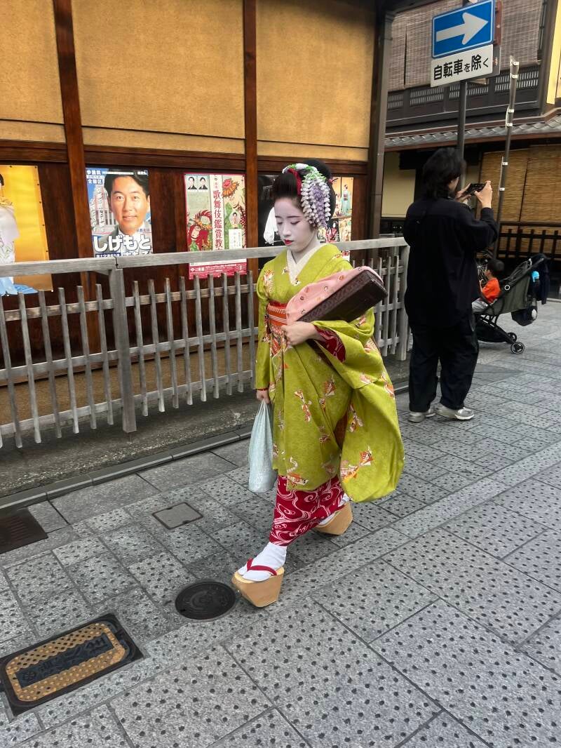 After checking in, we went straight out to explore the Gion district, famous for its old wooden houses, lantern-lit alleys, and traditional tea houses. We walked through narrow streets, and actually spotted several geisha (called geiko in Kyoto) moving between appointments. According to our guide, that’s pretty rare, so we got lucky. They're dressed in full traditional wear and move so quickly and quietly to avoid tourists.